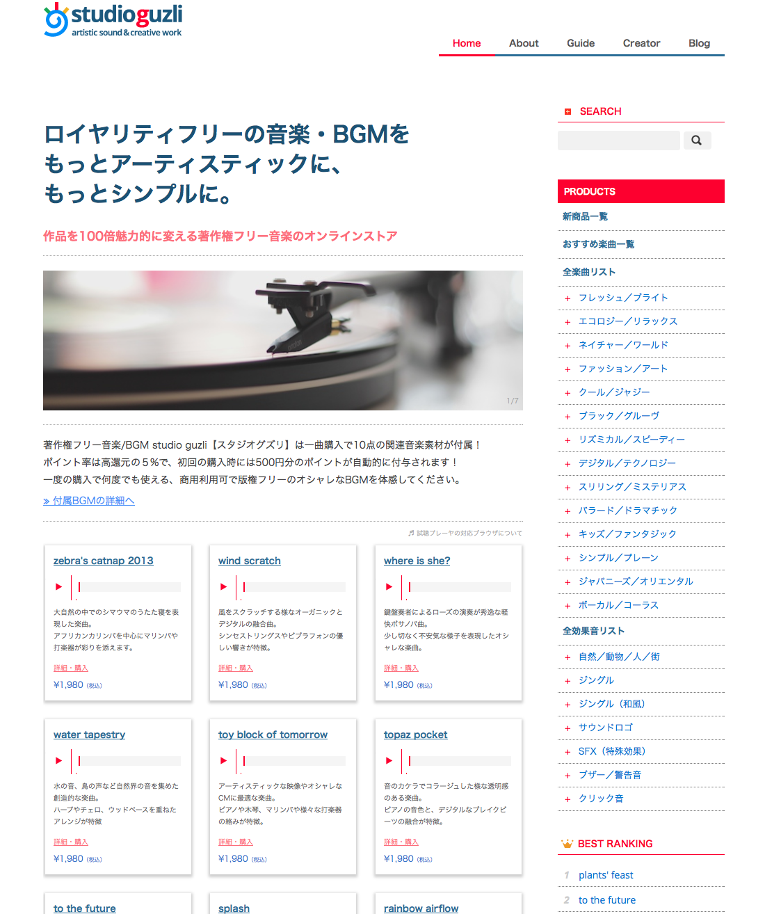ウェブサイト、番組放送、CM、映像作品、イベントなど、様々なシーンに商用利用で何度でも使えるアーティスティックでオシャレなプロ仕様のロイヤリティーフリー音楽が1,980円でダウンロードできるサイト「studio guzli【スタジオグズリ】」のサービスを開始!