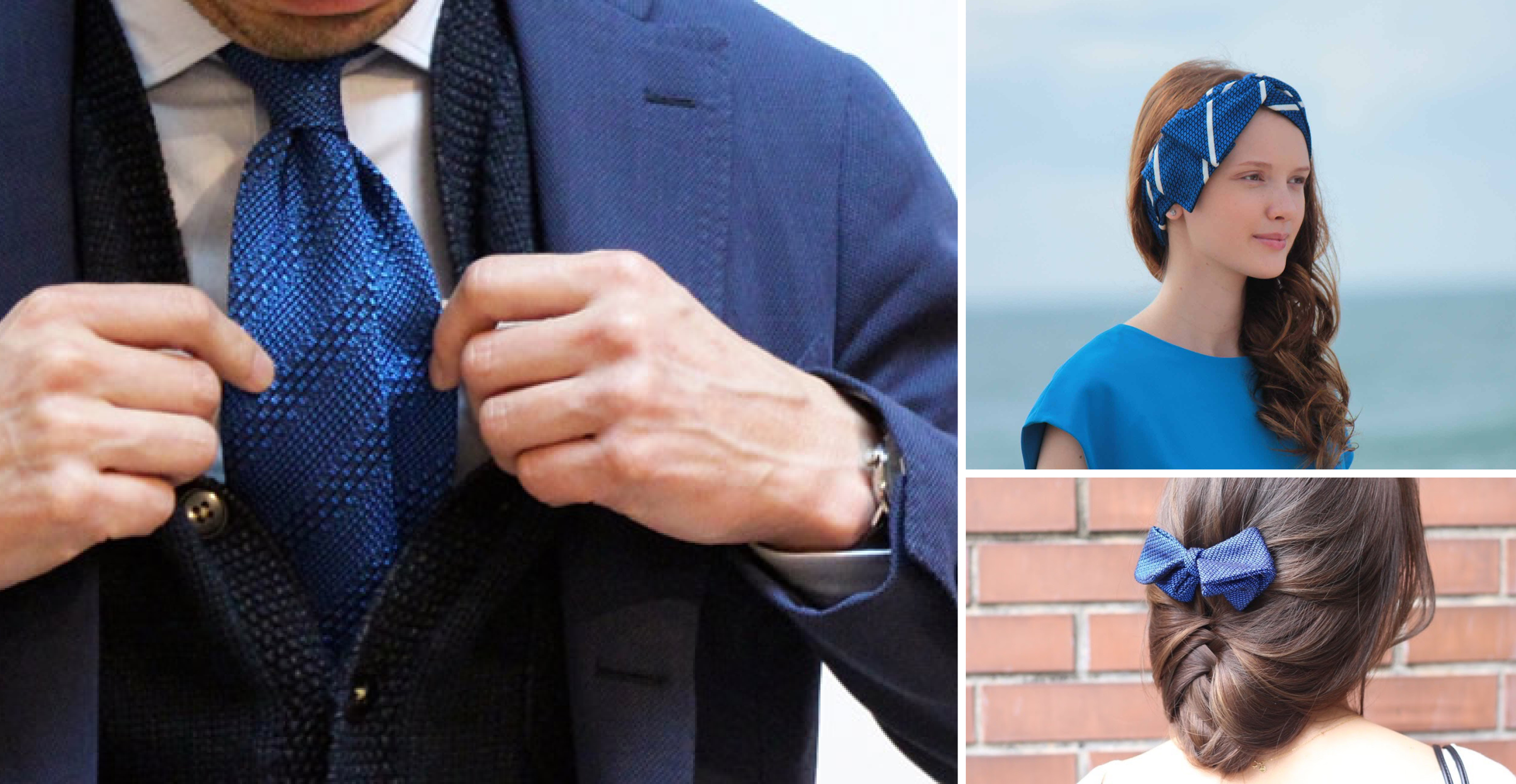 世界唯一の手織りネクタイブランド「KUSKA」よりクリスマスシーズン商品のご提案 職人が1日に約2本分しか織れない、丹後ジャガードのネクタイとバレッタ/バンダナのペアギフト