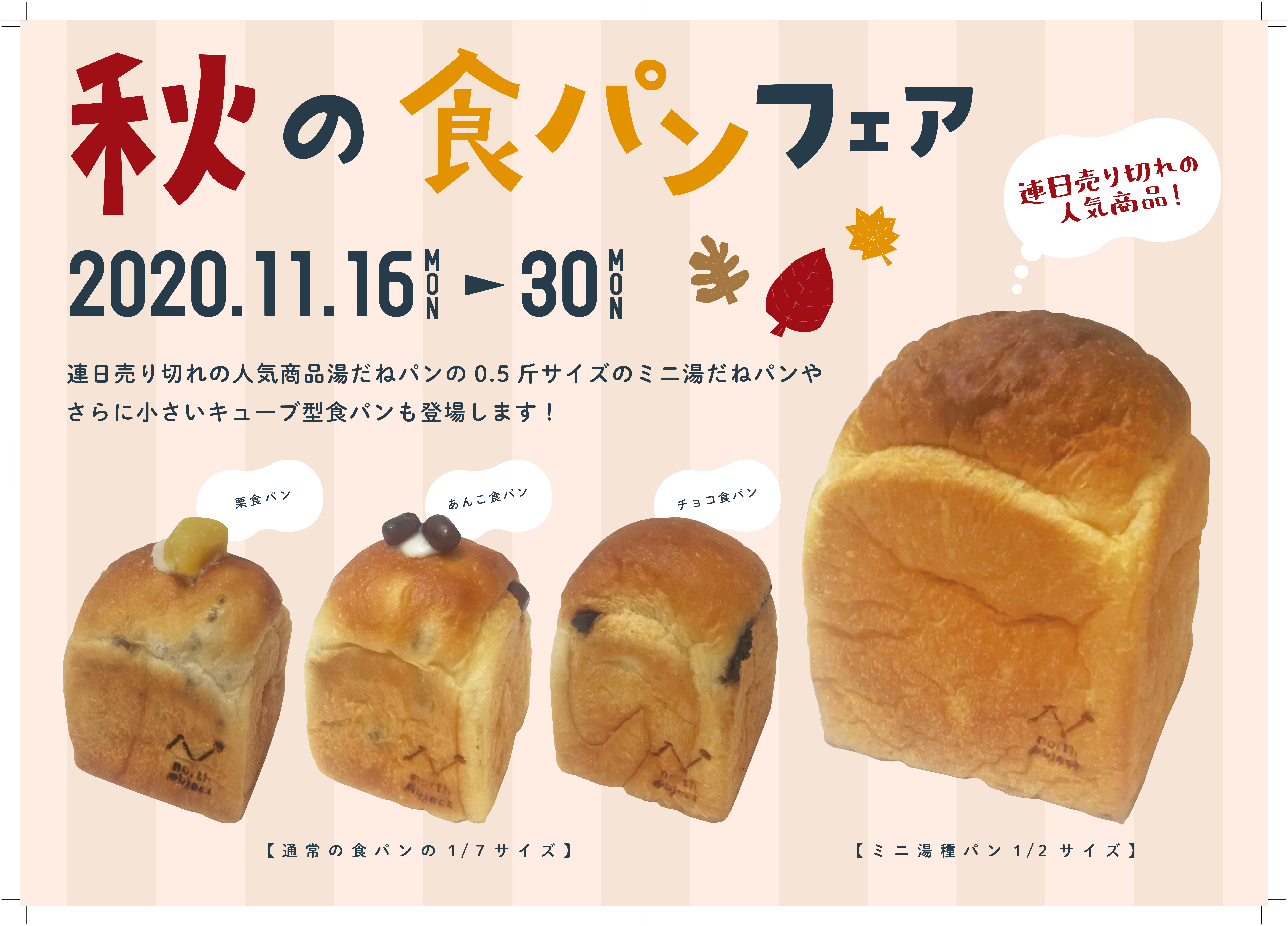 7分の1サイズの「ミニ食パン」と連日売り切れの「湯種食パン」2分の1サイズが登場!家族みんなで食べ比べにも。秋の食パンフェア開催!