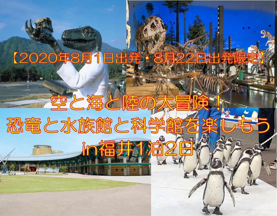 【2020年8月1日出発・8月22日出発宿泊プラン】空と海と陸の大冒険!恐竜と水族館と科学館を楽しもうin福井1泊2日