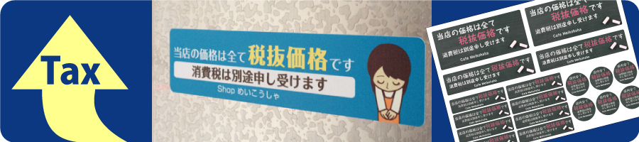 印刷ネットドットコム 便利シール屋さん【消費税表示対策コーナー】外税表示もバッチリ価格シールや税抜お知らせステッカー、訂正シールなど消費税率変更に伴う表示対策はお任せください