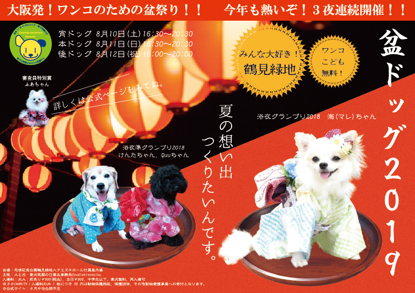 今年はなんと3夜連続!大阪発!ワンコのための盆祭り「盆ドッグ2019」8月10日(土)11日(日)12日(祝)花博記念公園鶴見緑地にて開催!!