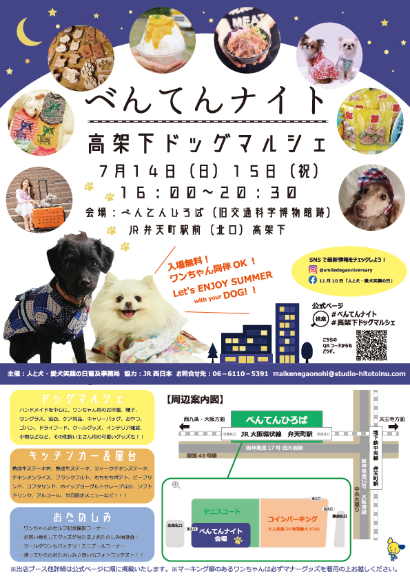 初開催!JR弁天町駅高架下に可愛いワンコが大集合!!夏の夜のドッグマルシェ「べんてんナイト」7月14日(日)15(祝)夕方16時より開催!