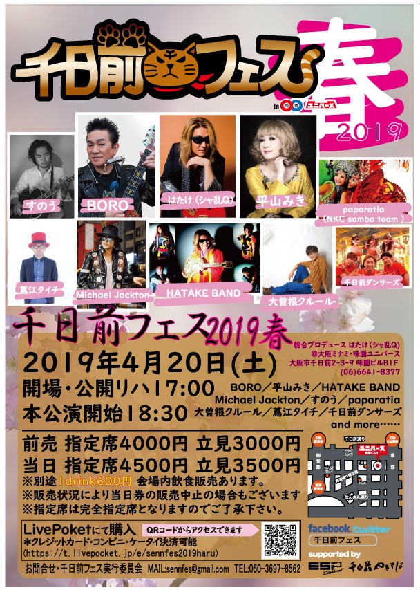 大阪生まれ大阪育ちの音楽フェス! シャ乱Qはたけプロデュース「千日前フェス2019春」開催!