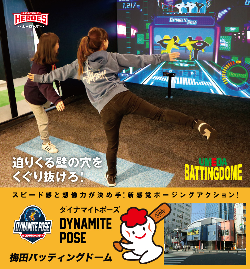 大阪梅田の人気アミューズメント施設「梅田バッティングドーム」に、大阪初の特設コンテナにて新感覚ポージングアクションマシン「ダイナマイトポーズ」を導入!!