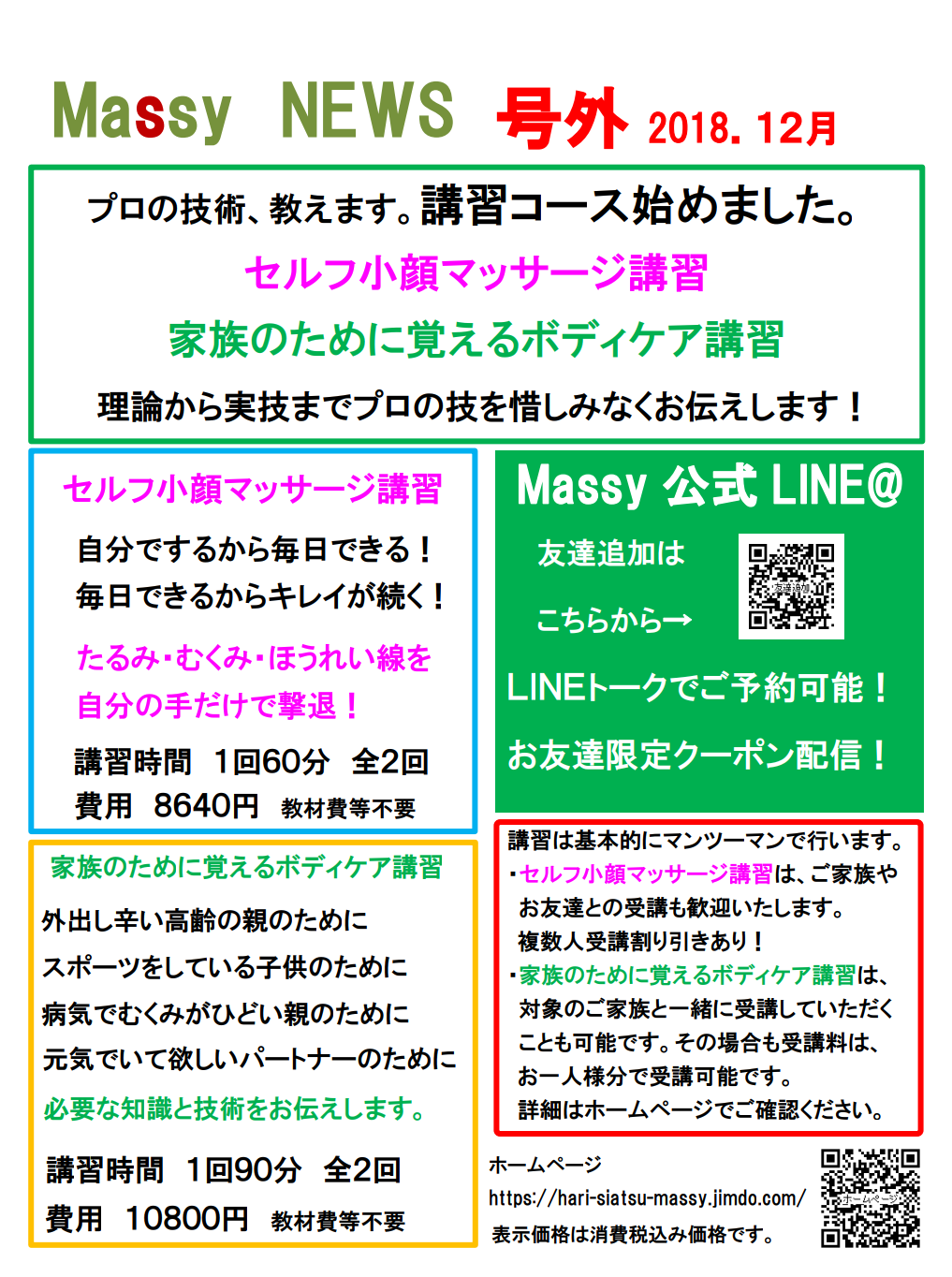 整体・トレーニング・癒しの融合パーソナルボディケアサロンMassyは、プロの技術を教える講習コースを、2018年12月18日(火)より提供開始します。