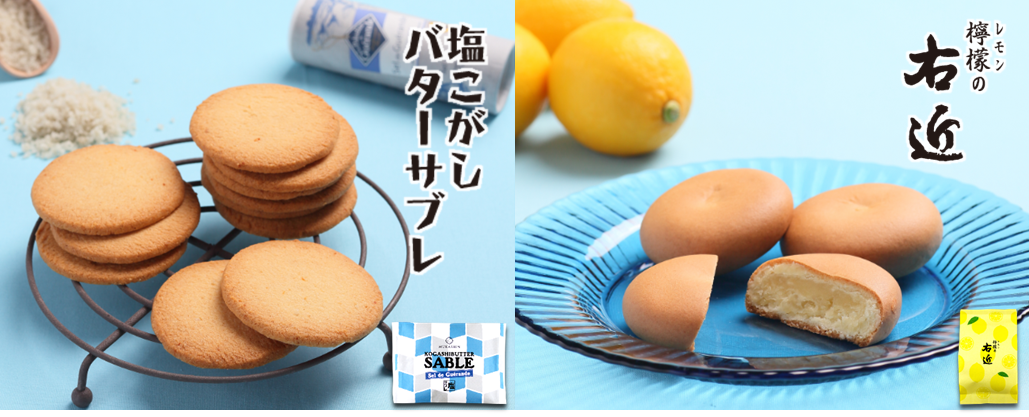 新発売!和歌山産レモンをつかった さっぱり風味のお饅頭『檸檬の右近』と フランス産ゲランドの塩をつかった豊かな味わいの 『塩こがしバターサブレ』がデビュー!!