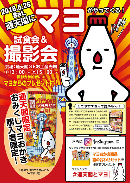 大阪・通天閣に「マヨ」がやってくる! マヨおかき試食会&キャラクター撮影会 2018年5月26日(土)通天閣で開催!