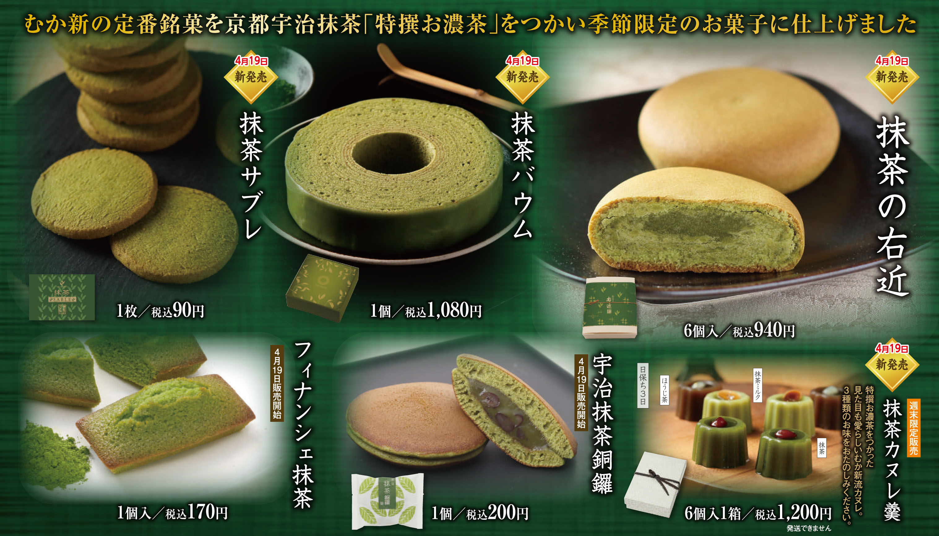 京都宇治産 宇治抹茶の中からさらに厳選! むか新でしか味わえないお濃茶スイーツが満載。 『お濃茶フェア』4月19日(木)から 南大阪~和歌山の各店で開催!