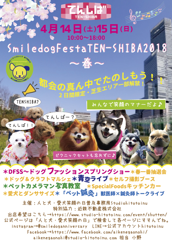 都会の真ん中「てんしば」で愛犬も一緒にたのしむ春の2DAYS『SmiledogFestaTEN-SHIBA2018~春~』4月14日(土)4月15日(日)開催!