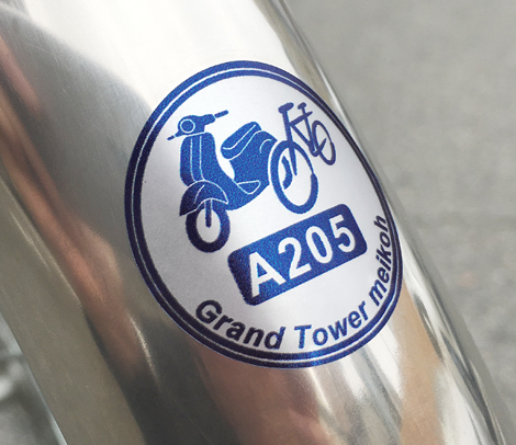 駐輪シール屋さん新商品「クール自転車&バイク 円形30タイプ」自転車マークとバイクマークを同時表示、クールなイラスト入りでナンバリング無料、耐候性バツグン